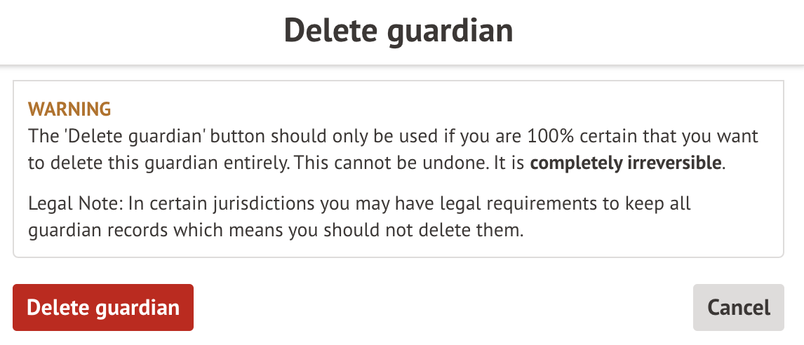 If you're sure that two guardians are duplicates but aren't being identified as duplicates, make sure that their names are identical. Please note that if a user has a guardian and a staff profile, these do not count as duplicates.