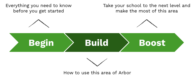 - More information on these journeys: Making the most out of Arbor with Begin, Build, Boost
