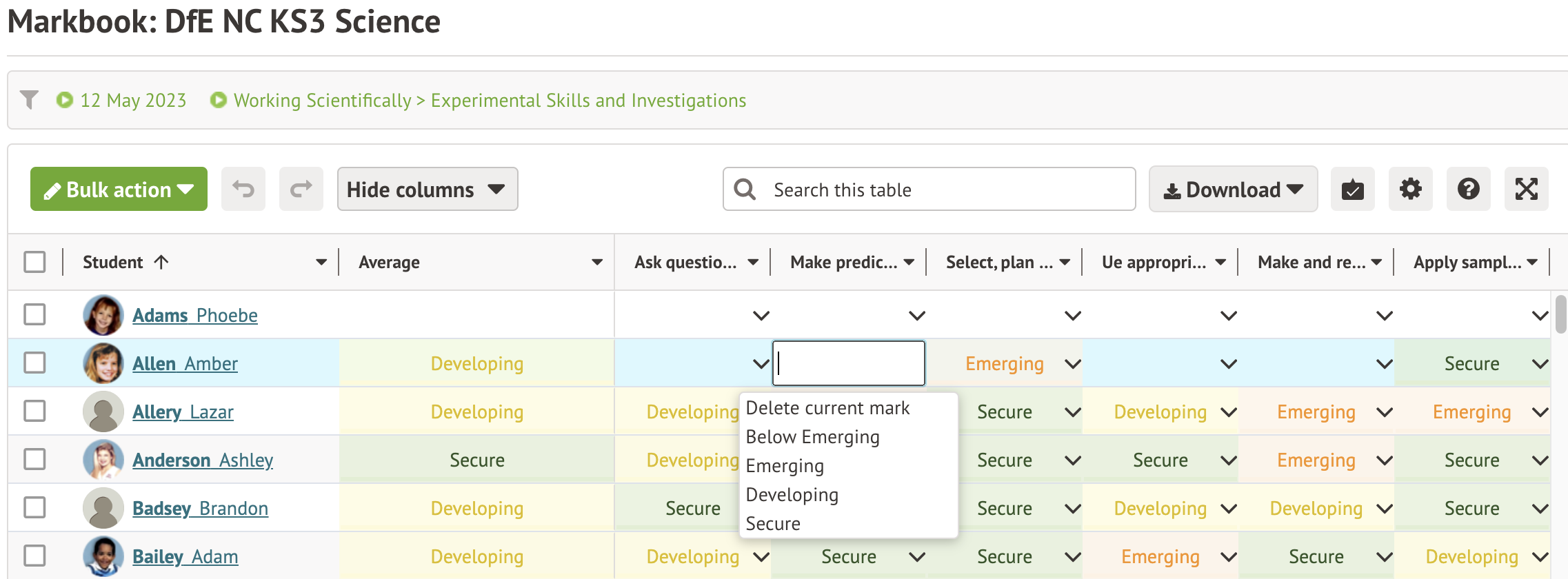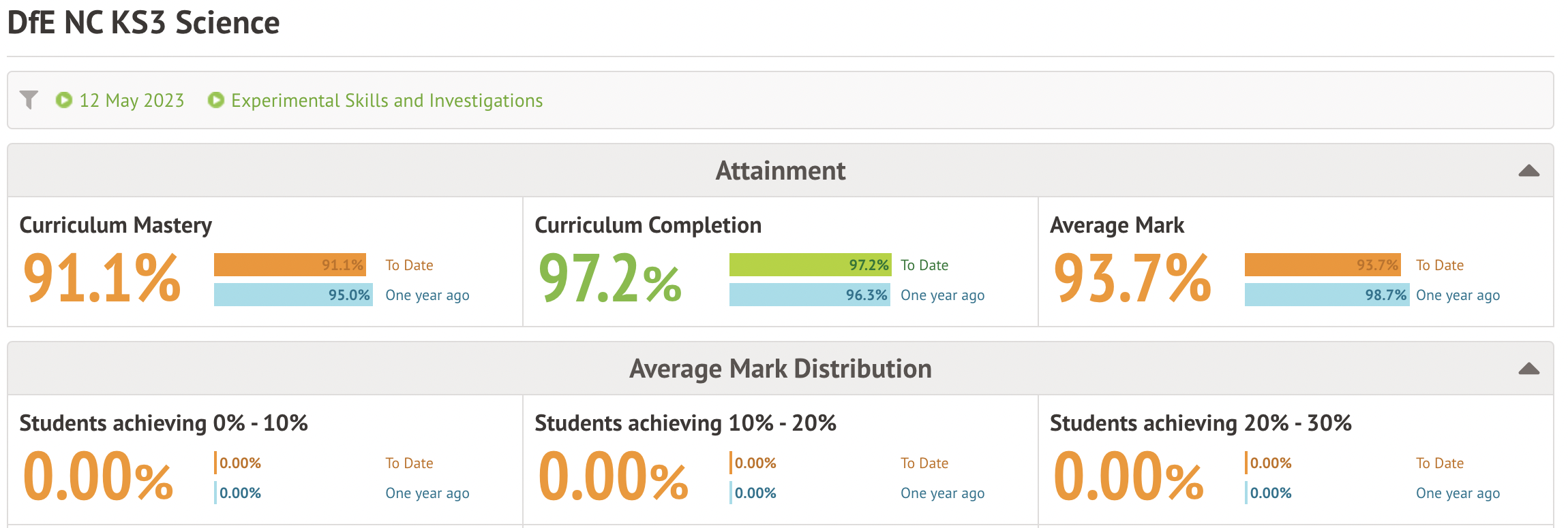 Once you've put some marks in, you can view analysis and track your student's progress through the curriculum using the curriculum analysis pages.