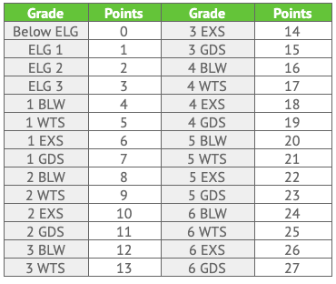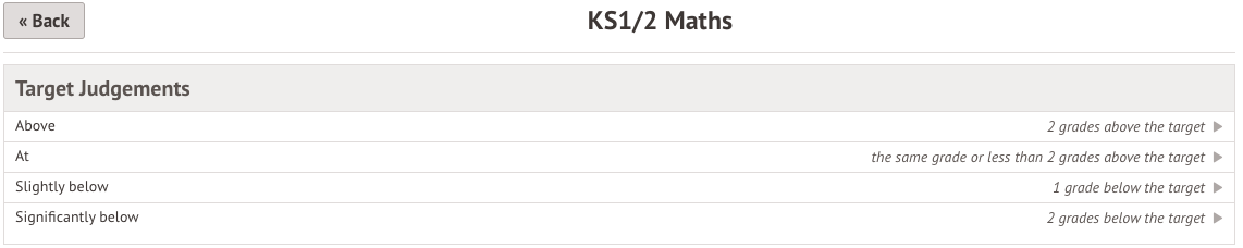 This scale is used for assessments spanning many years of assessments, as it provides greater granularity for tracking against age-related expectations. For example, if your year 1s to year 6s are all graded on a progressing grade scale, your year 1s will likely be all graded with the lowest grade, leaving little room for analysis.