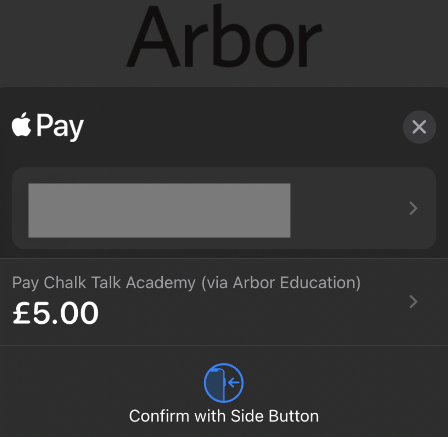 As well as topping up an account by card, parents can make payments on their devices using Apple Pay or Google Pay. You can see how to get set up (and see the package requirements for this feature) here: Making payments with Apple Pay and Google Pay