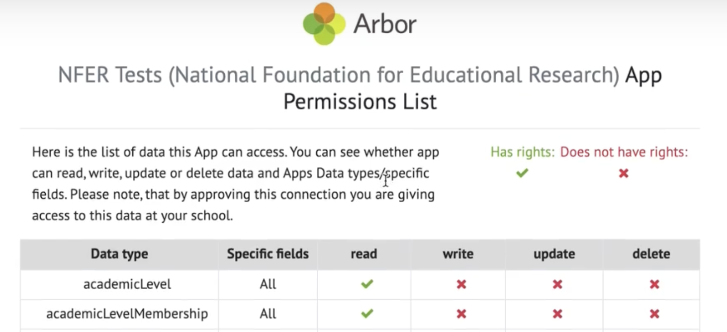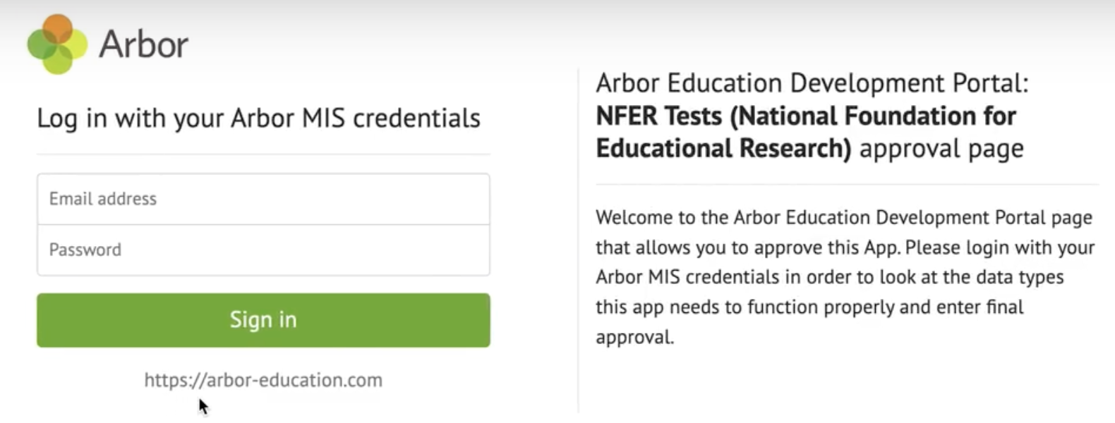 - Follow the instructions outlined by NFER on their website: NFER and Arbor MIS Integration