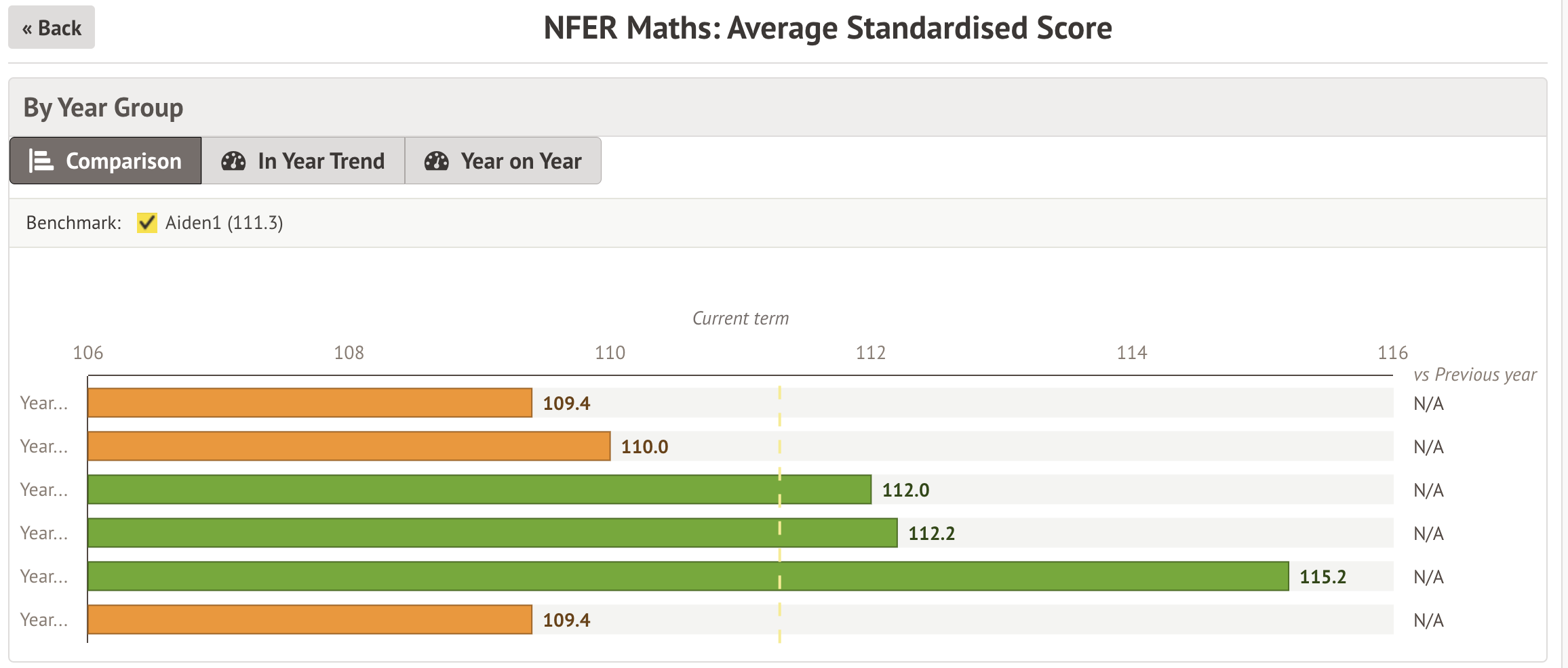 You will not be able to see any school NFER data until at least one of your schools has set up the integration. So you can see the data from each of your schools, they must each set up their own integrations. The dashboards with then display data for that school. See the section below to see what this will look like.