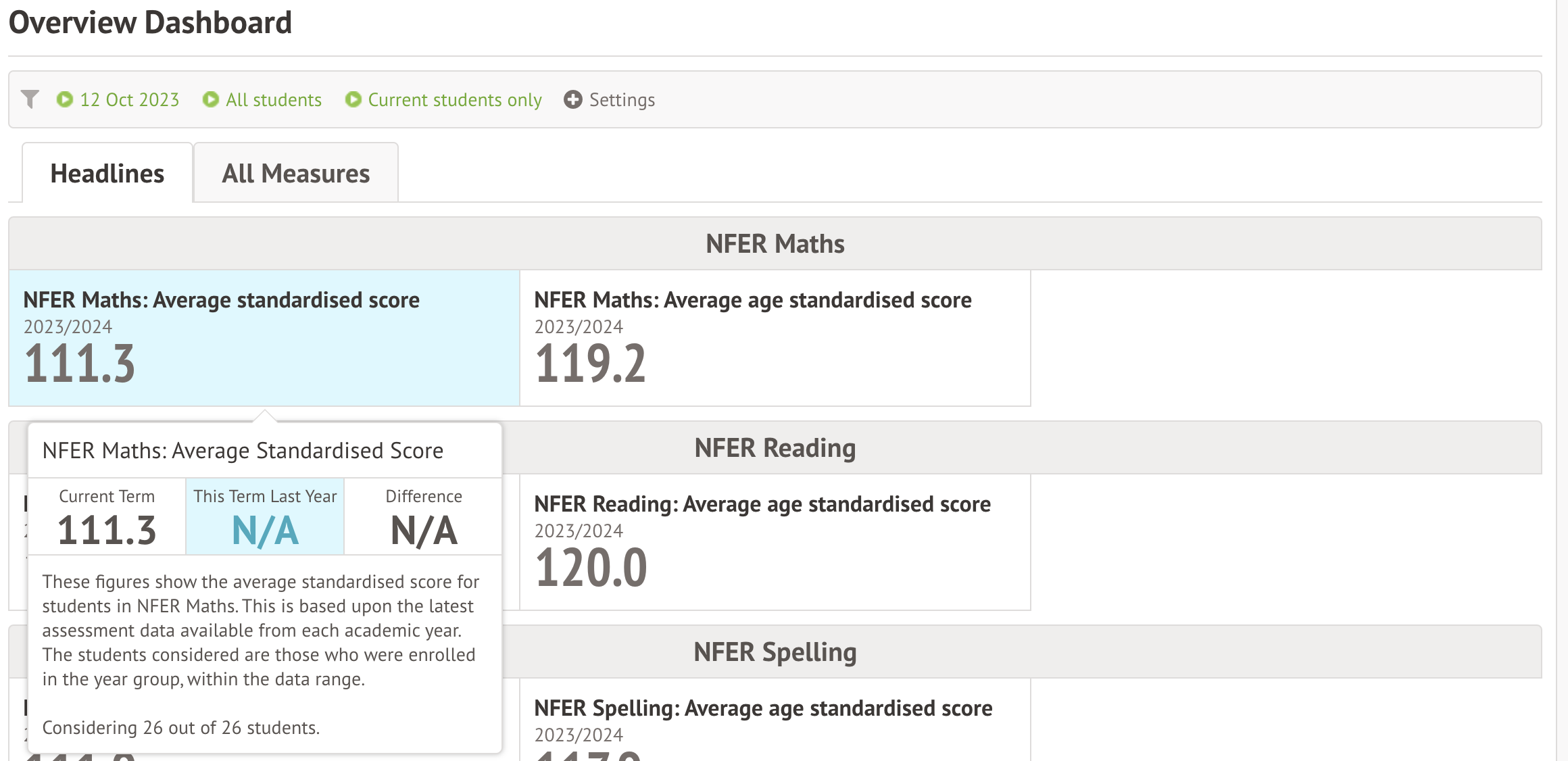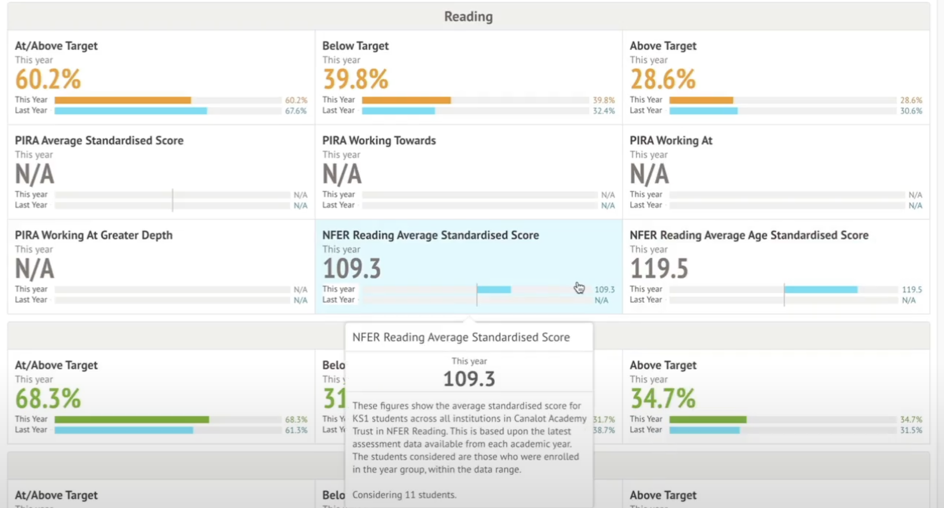 - We also display KPIs for Average Standardised Score and Average Age Standardised Score on the School and MAT MIS dashboards.
