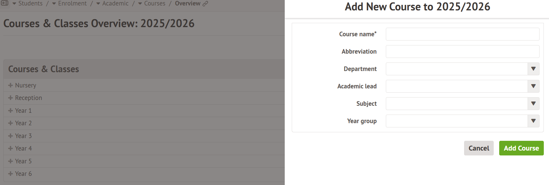 If your Nursery courses or AM/PM modules are currently sat under the wrong top-level courses, please see this article for instructions on Moving a module to a different parent course.