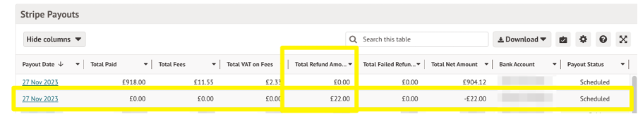 If any of your payout amounts are negative (such as if you have had no money paid in, but have issued refunds), no money can be paid out.