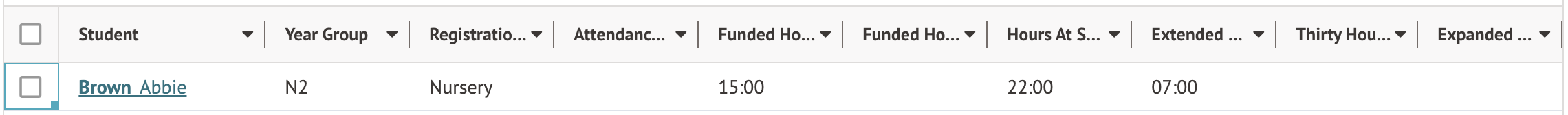 Click on a student's name to update their funded hours, hours at setting, extended or expanded hours.