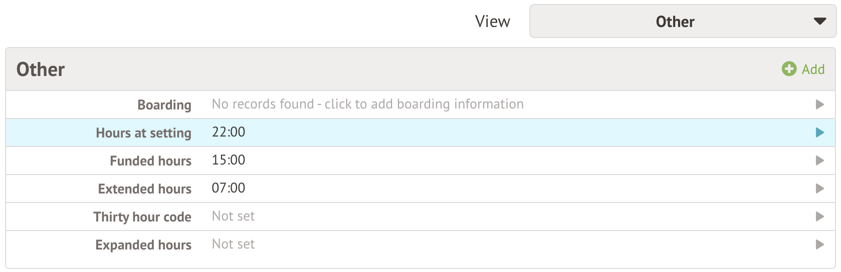 For students that are not entitled to extended or expanded hours paid for by the government, do not enter anything into the Extended hours or Expanded hours fields. Arbor is unable to distinguish between a number entered in the Extended hours field (e.g. 15:00) and zero (e.g. 00:00).