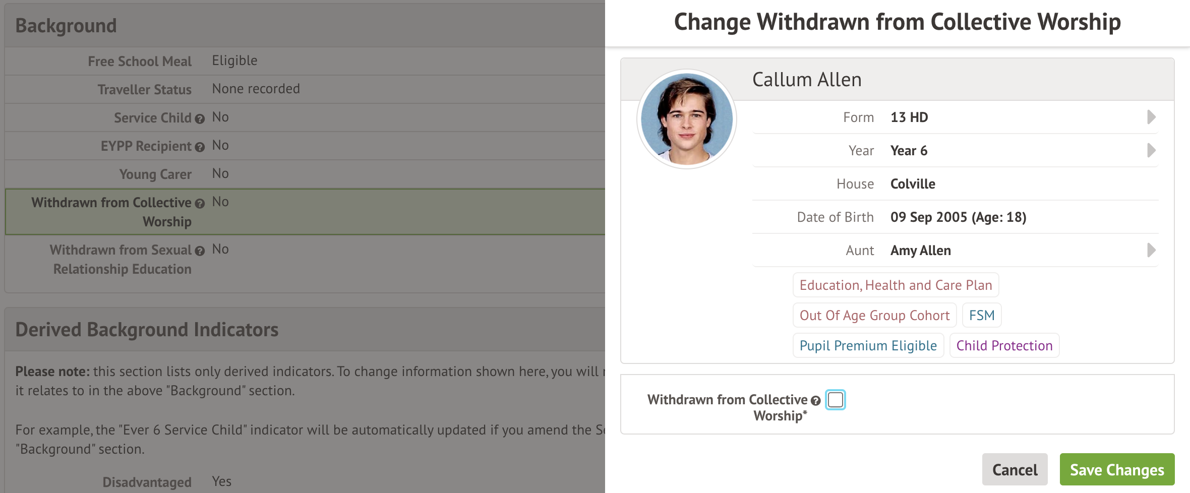 If your school completes the Catholic or CES Census, you may need to note students who have withdrawn from CW or withdrawn from SRE.