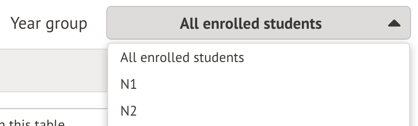 - This page will show all enrolled students by default, but you can select a year group using the drop-down.