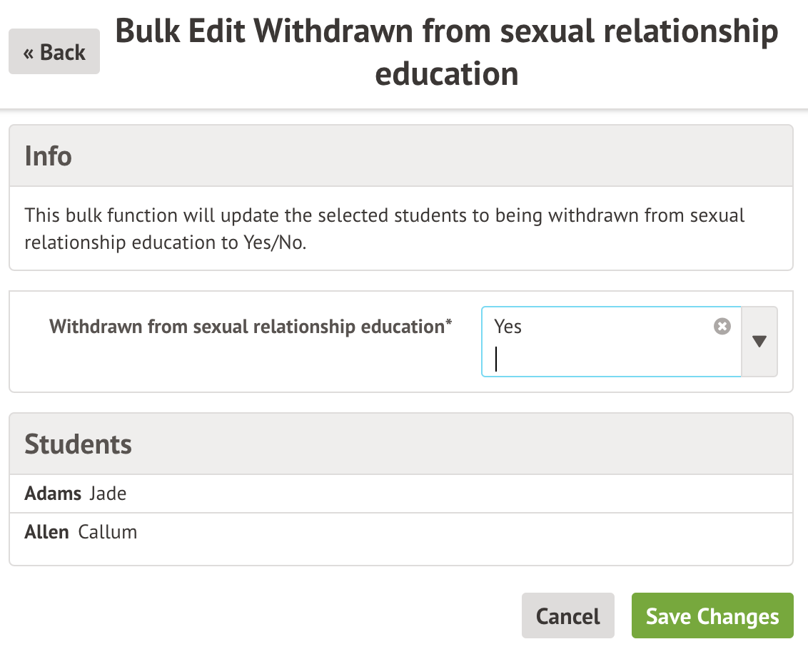 - You cannot bulk update students who have left from here - you will need to use their student profile.