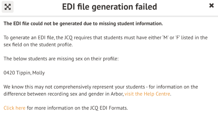 This article explains the reasons for failure in generating an EDI Entry File for submitting entries to Awarding Organisations, including issues with centre number setup, missing student sex information, and lack of Unique Candidate Identifiers (UCI) for students.