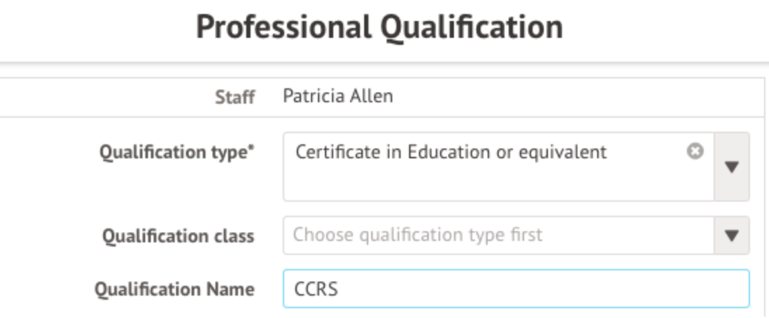 Add in the details, choosing 'Certificate in Education or Equivalent' for the type and 'CCRS' as the name, set a date awarded and save.