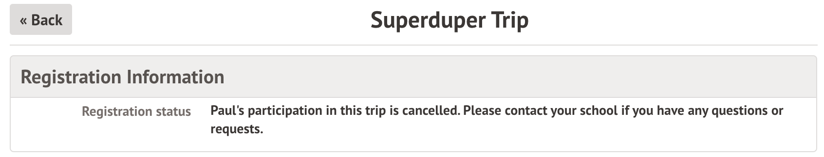 Before you do this, parents can see the trip in the Upcoming Trips section, but they cannot sign up again or make payments.