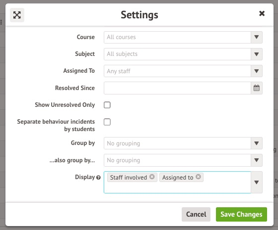 When logging a behaviour incident, the Staff involved field will automatically add the staff member logging the incident. This can be changed to a different staff member. You can also choose which staff the incident should be assigned to.