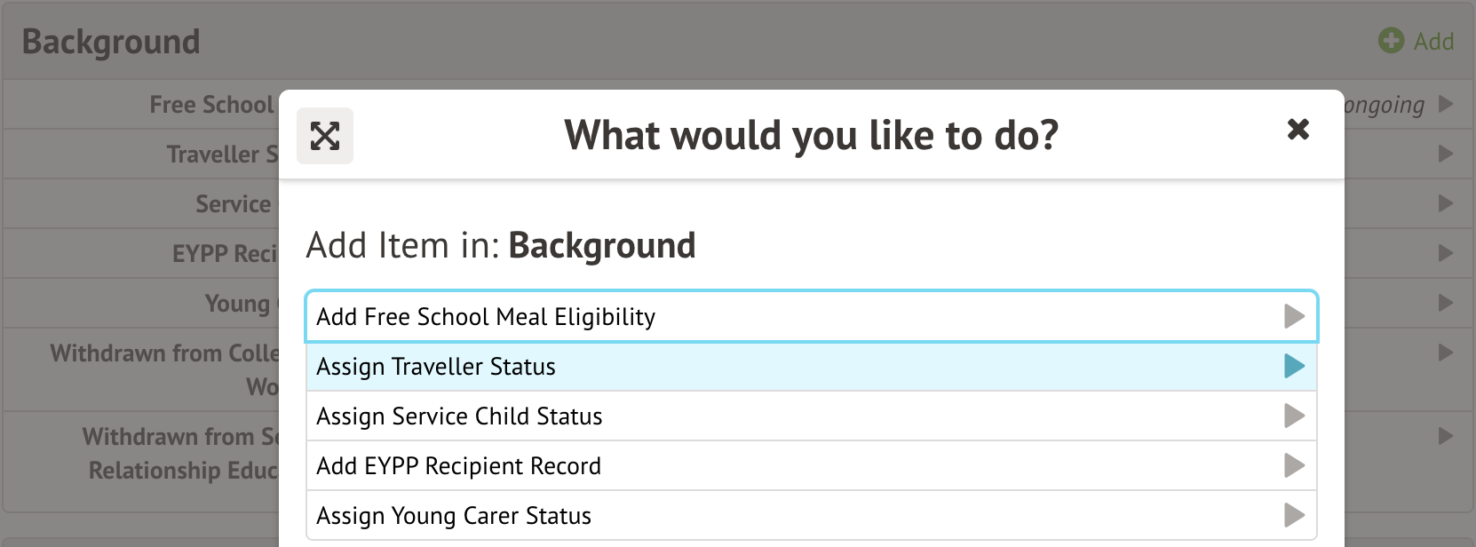 - Student Profile: Background: Administer All Students - Add or edit FSM eligibility for all students.