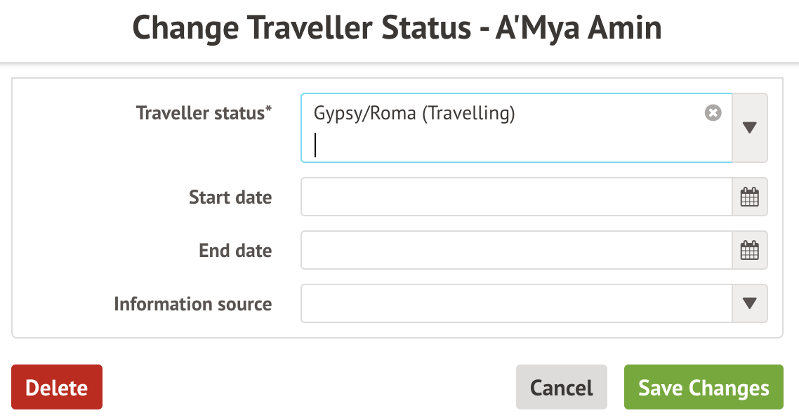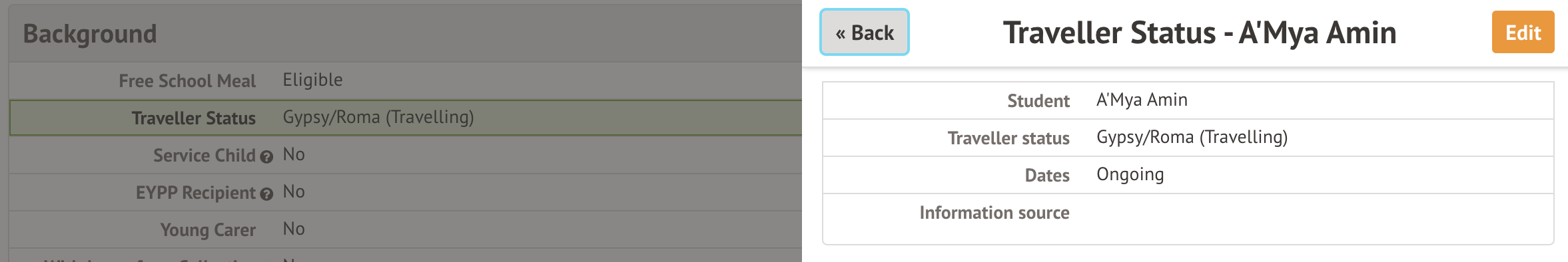 To add a traveller status to a student, go to their student profile and scroll down to the Background section.