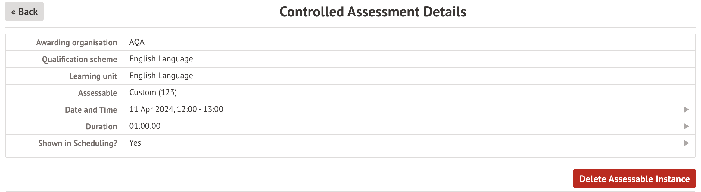 If you need to change the times or dates for an assessable scheduling you can do this here:
