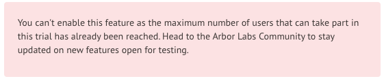On the Arbor Labs page, you will see a list of all of the features currently being tested, and the tick or cross in the Status column shows whether or not the feature has been enabled.