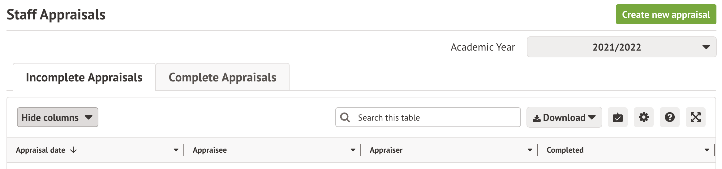 - Appraisal - A review of the staff member's work, objectives and what they need to do to improve their performance. You can create as many appraisals for a staff member as needed.
