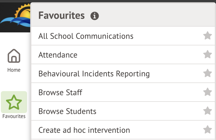 The Favourites icon brings up your favourites, providing a list of your favourited items for quicker navigation.