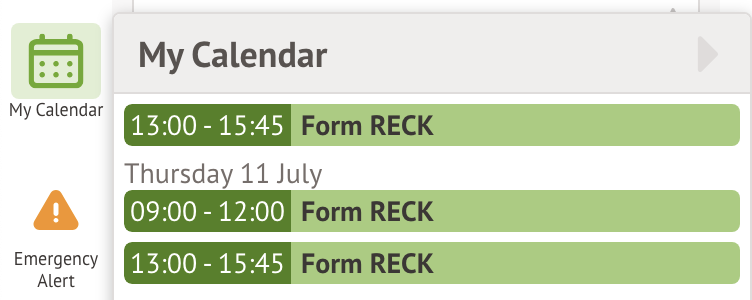The Emergency Alert icon sends an alert to the staff member who is on call.