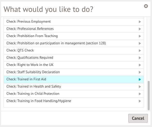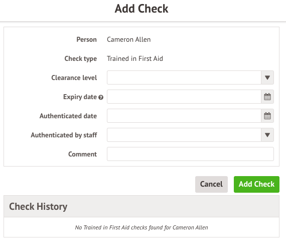 You can add records of courses and checks to a staff member from their Staff Profile.