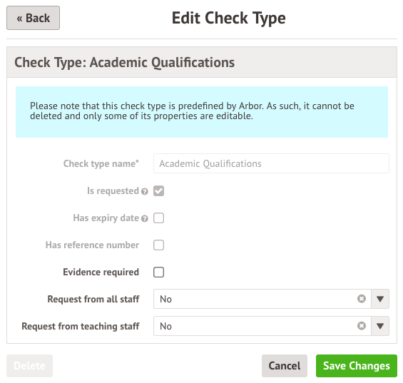 This article explains how to manage checks and qualifications for staff profiles in Arbor, including viewing, adding, and editing check types, reviewing staff linked to checks, and logging checks and qualifications on individual staff profiles.