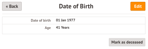 To mark a guardian as deceased, click the row containing 'Date of Birth' and click the 'Mark as Deceased.