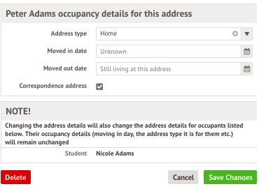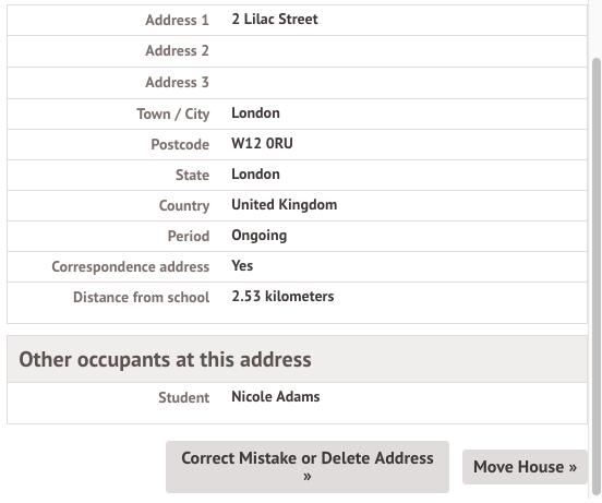 When choosing Move House, you can decide whether or not to update the student’s address as well, for example, if a student’s guardians have split up and one parent moves out.