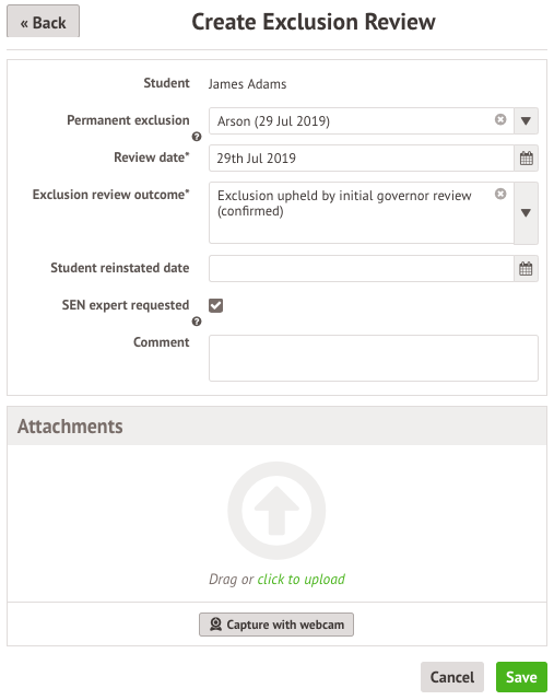 - For students who have an upheld exclusion, details of the exclusion and the exclusion review should be recorded. You can do this in Arbor, or use another system.
