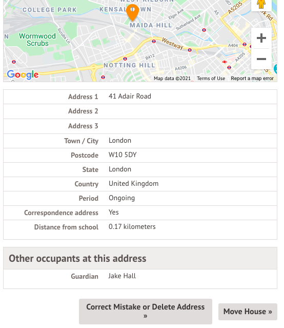 Click an address to correct a mistake or move the child to a new address. More details on this process can be found here: Add, edit and delete student and guardian postal addresses