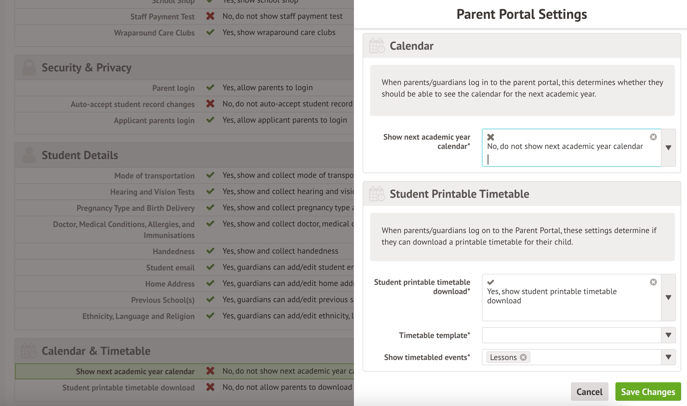 A setting called Show next academic year calendar has been added to ensure that when you are working on your calendars, they cannot be viewed before they are ready.
