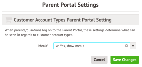 You can also choose whether to display each Customer Account Type set up on the parent portal - useful if some accounts are for school use only. This also determines what accounts parents can make card payments for.