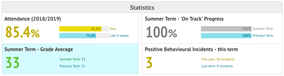 In Behaviour, you can choose to display Notes, Detentions, Behavioural Incidents and Point Award Scales.