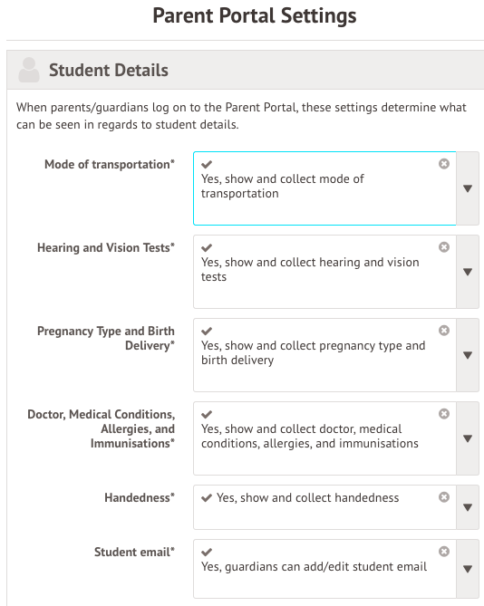 Manage how much student information parents can view and edit on their child's Student Profile. Please note that the changes may require approval from the school. See the section below for more information.
