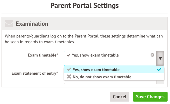 You can choose to display the Examinations Timetable for the current and past academic years and allow parents to download it as a PDF. You can also make the statement of entry and exam results (including In-house exam results) available. Results will only be available to view once the embargo date and time you’ve chosen has passed.