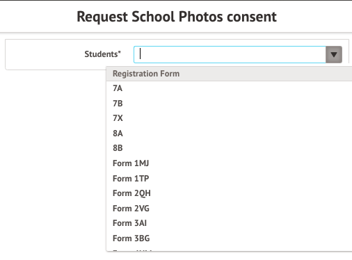 A slide-over will appear with the option to add an individual student, registration form, year group, or custom group. Once the relevant students have been selected click the Request Consent button. This will send a pending request to the parent/guardian of that pupil.