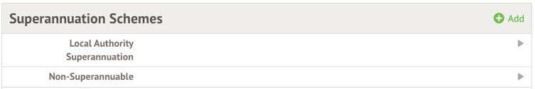 The Superannuation Scheme Dashboard shows a list of the current superannuation schemes and pension schemes set up by the school. New schemes can also be added by clicking on +Add and inputting the basic information about the scheme.