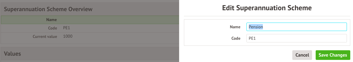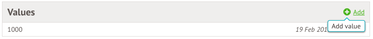 To add the value of the scheme click +Add in the Values section and input the dates and amount.