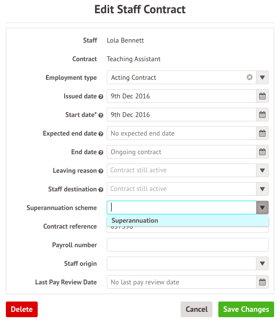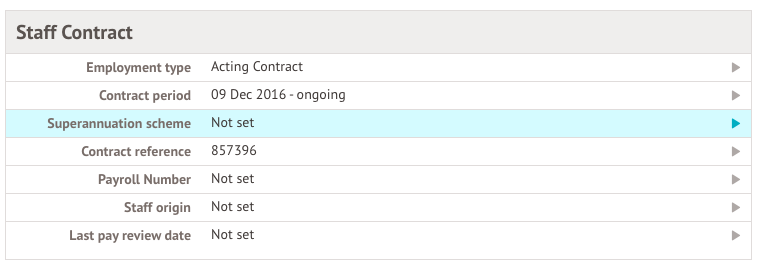 To add the scheme to a staff member's contract, go to the Contracts section of their Staff Profile.