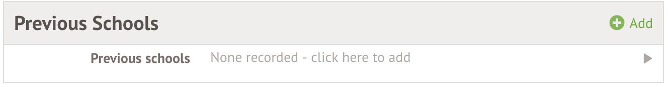 The Previous Schools section will list the student's previous enrollment into past schools. To view details of a previous school listed, select it, a slide over will appear displaying all of the school's details.