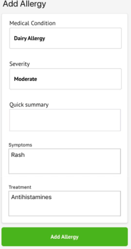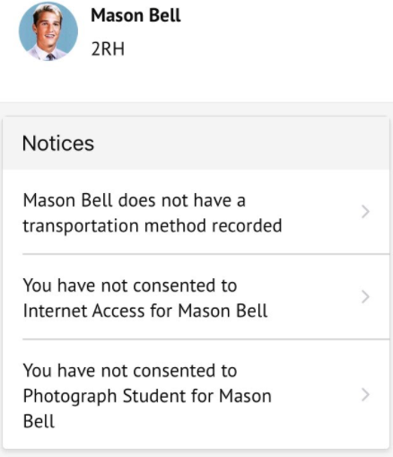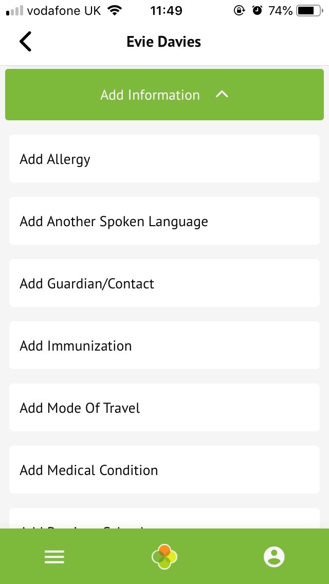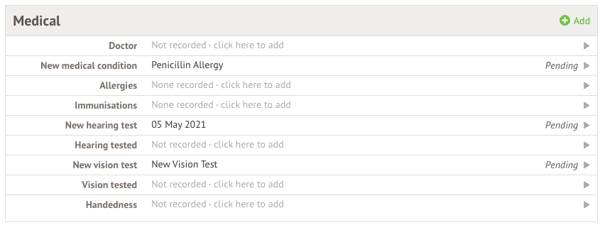 Once you've filled in all the information, the notices will disappear - you can edit the information by clicking into the data further down your child's profile.
