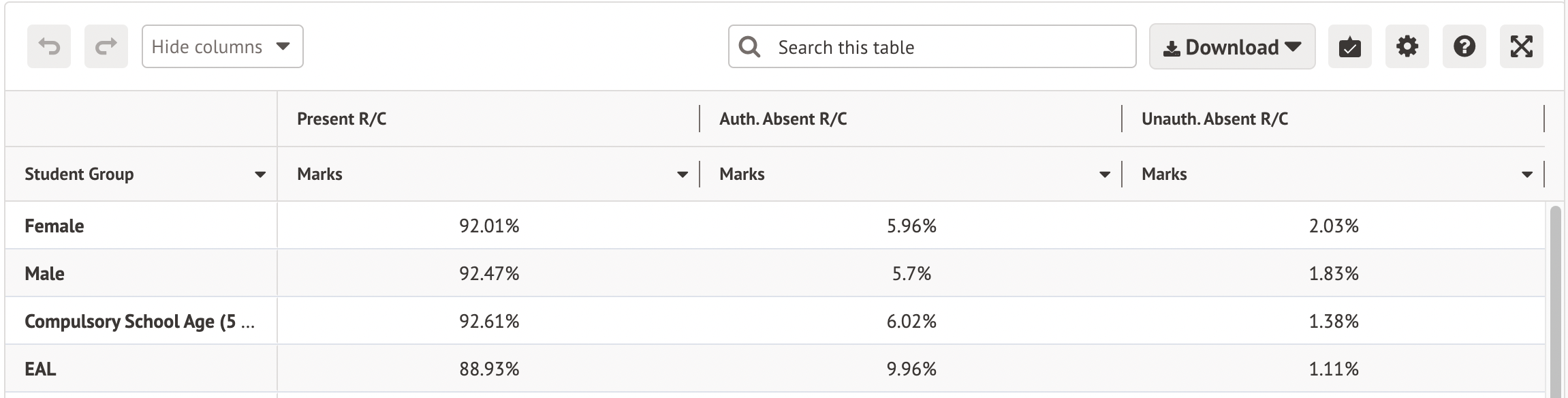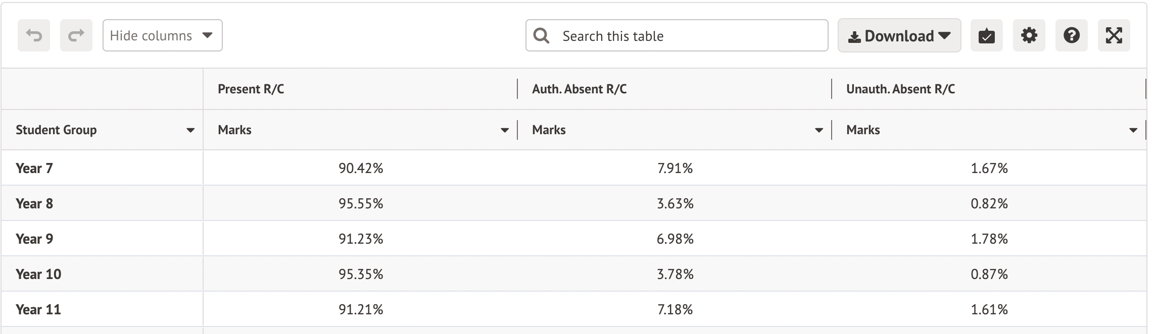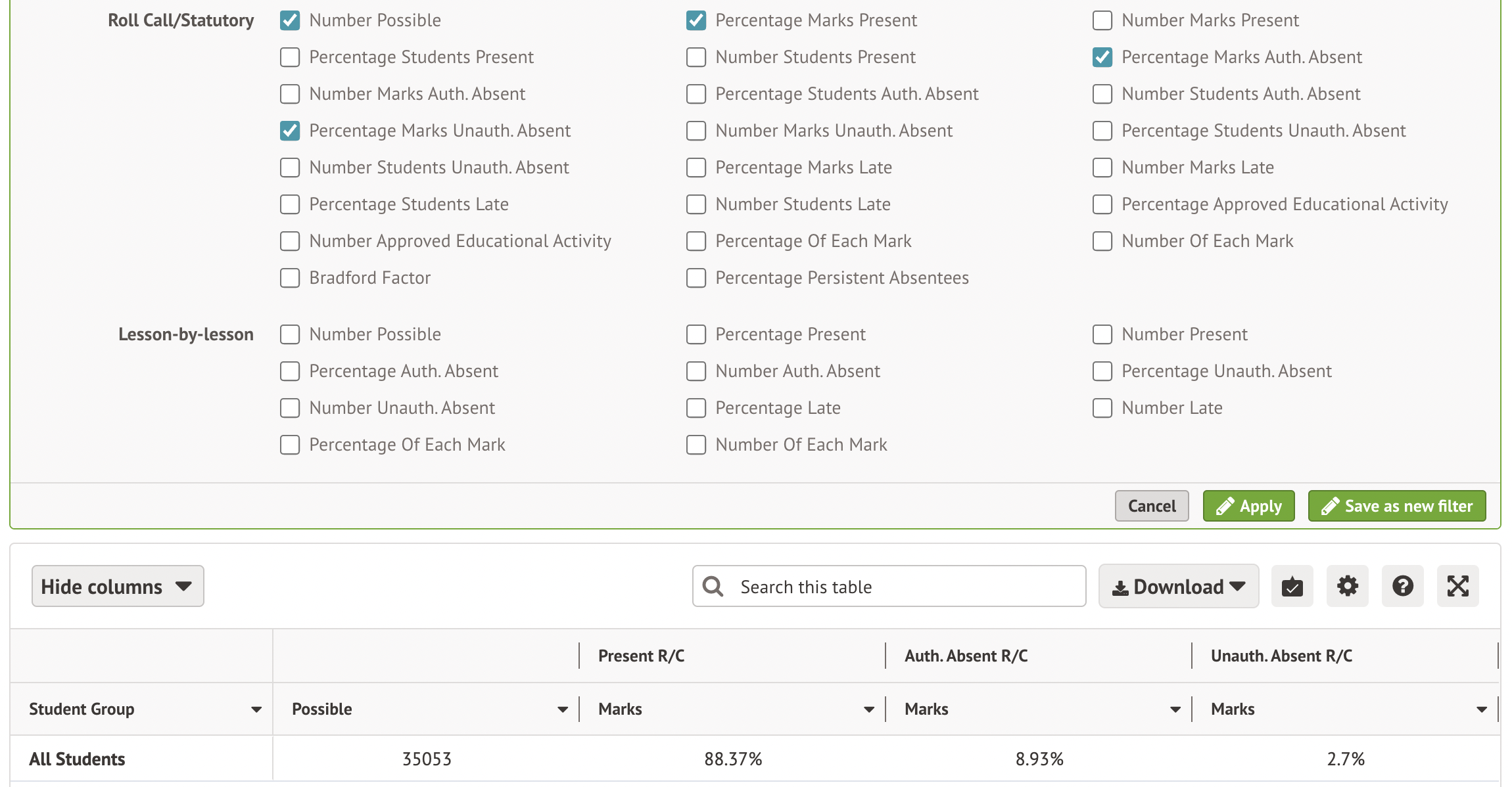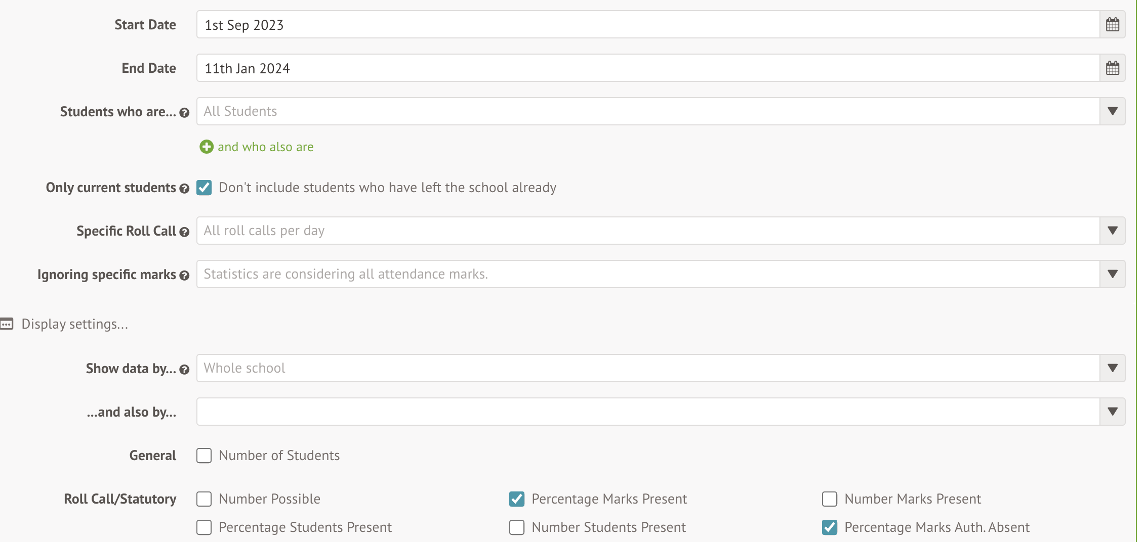 - Specific Roll Call - If you're reporting on statutory attendance, you can decide to look at just PM or AM marks.