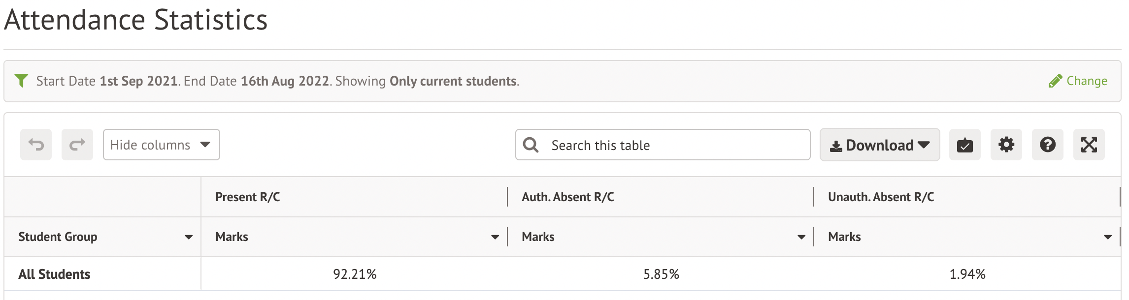 - Only current students - This is checked by default, untick this box to include students who attended your school during the date range, but are now off roll.