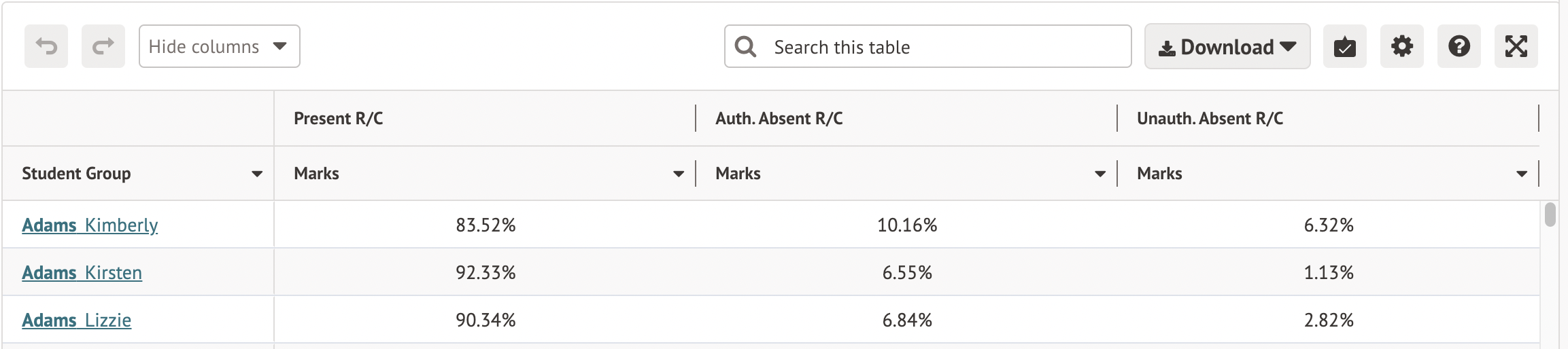 Top Tip: Click the Marks header to sort your group from highest attendance to lowest.