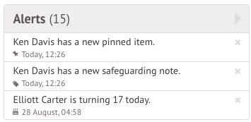 New items that are 'pinned' will show up as an Alert on the homepage for any staff that are linked to the student, and have the permissions to view the pinned item.