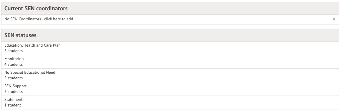 - If a student you're expecting to be SEN/ALN doesn't appear in these lists, double-check you've added their SEN/ALN status to their student profile here.