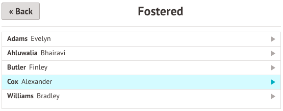 If you click on a particular status, such as 'Fostered' (as shown in the below screenshot), you will be given a list of the students who fall under that category.
