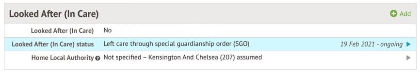 - If you are trying to add a historic Looked After (In Care) status, you will need to set a Post Looked After status instead.